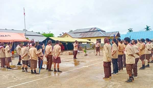 Koreri.com, Boven Digoel – Babinsa Koramil 1711-03/TM Kampung Persatuan Sertu Rofinus melaksanakan pendampingan kegiatan Perkemahan Besar Pramuka Tingkat Penggalang Kwartir Cabang Boven Digoel Tahun 2021.
