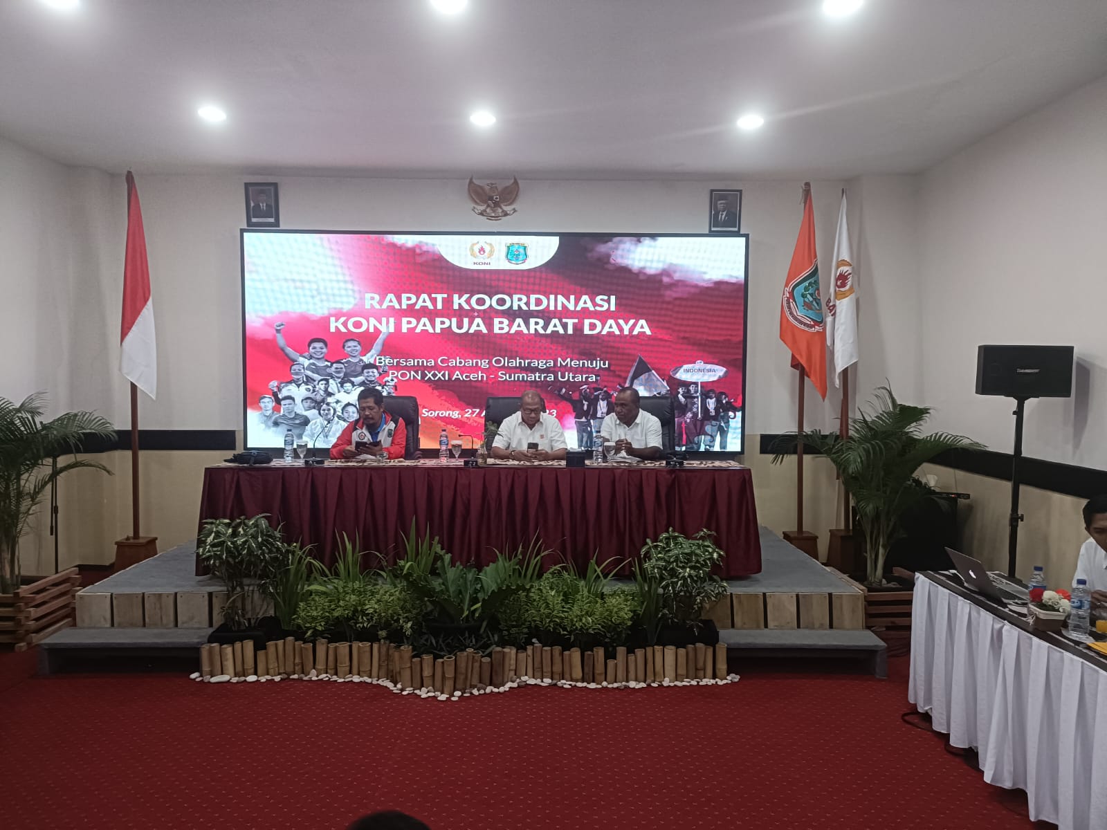Rapat koordinasi dipimpin Ketua Harian KONI PBD Abu bakar Gusti didampingi Wakil Ketua Istiyono dan Viktor Solossa, dan dihadiri kurang lebih 19 pengurus cabor berlangsung di Hotel Vega Sorong, Minggu (27/8/2023).