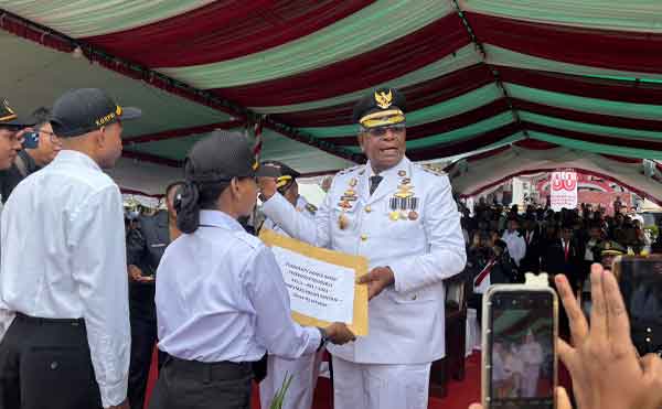 Bupati setempat Johannes Rettob secara resmi membagikan Surat Keterangan (SK) Calon Pegawai Negeri Sipil (CPNS) formasi 2024 secara simbolis tepat di momen krusial peringatan bersejarah perjalanan bangsa Indonesia, Minggu (17/8/2025).