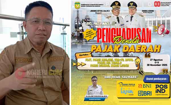Koreri.com, Timika – Badan Pendapatan Daerah (Bapenda) Kabupaten Mimika melaksanakan penghapusan denda pajak bagi semua jenis pajak dalam rangka memperingati HUT RI ke-80 dan HUT Kabupaten Mimika ke 29 yang jatuh pada 8 Oktober 2025 mendatang.